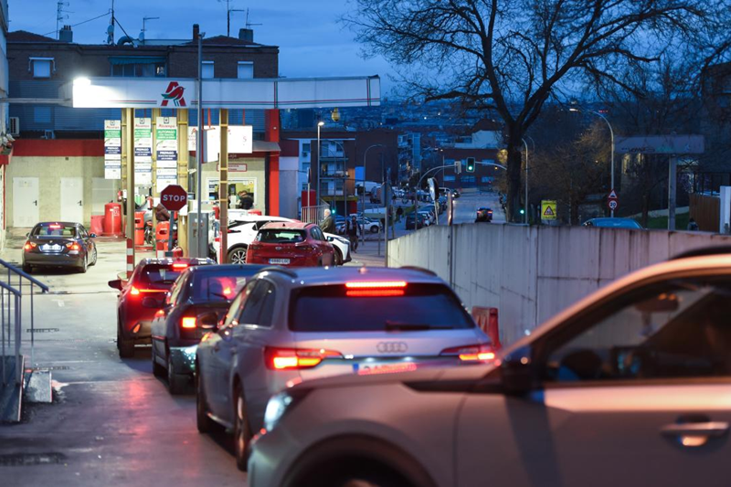 2026年3月9日,车辆在西班牙首都马德里一处加油站排队加油。受美国和以色列与伊朗军事冲突影响,国际油气价格近日飙升,欧洲多国油价攀升明显,加大欧洲民众生活成本压力。新华社发(古斯塔沃·巴连特摄)