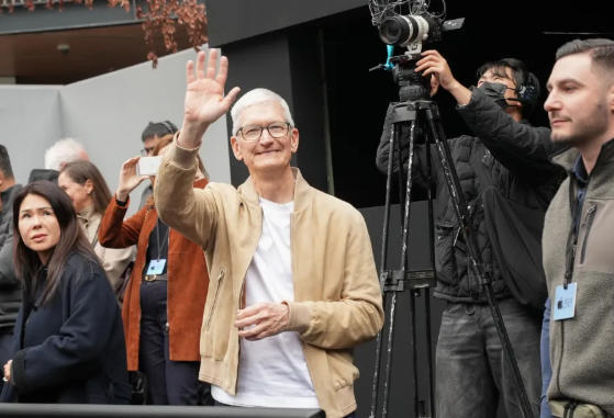 当天,苹果公司CEO库克现身活动现场,并和现场群众互动。