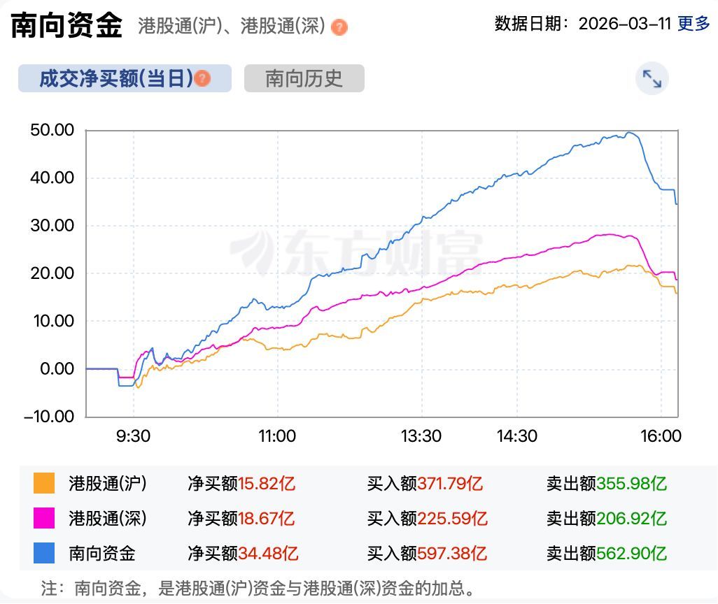 资金方面,截至收盘,南向资金净买入港股超34亿港元。