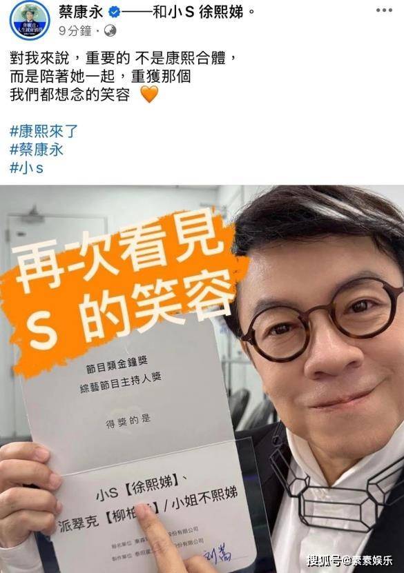 康永哥在参加节目之后发文:对我来说,重要的,不是康熙合体,而是陪着她一起,重获那个我们都想念的笑容。